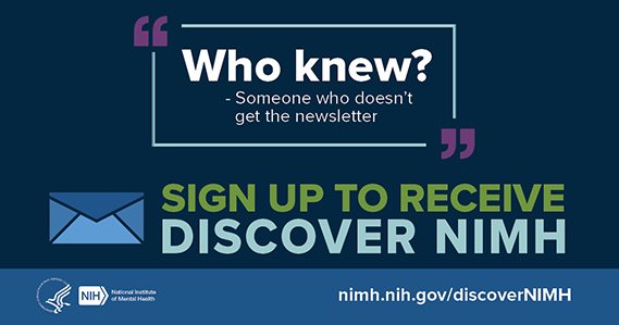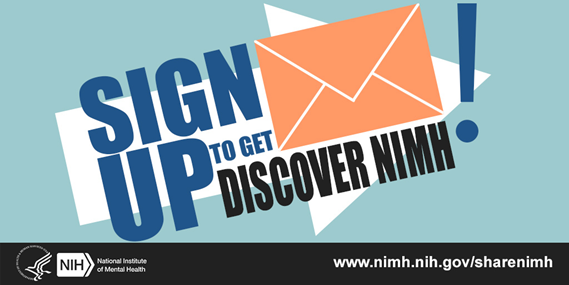 Learn about new education and outreach materials that you can use to raise awareness about mental health! Sign up for the Discover NIMH newsletter to get new resources from the National Institute of Mental Health (NIMH), including tools you can use to share during upcoming health observances.
