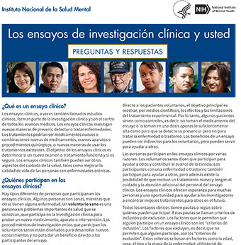 Esta hoja informativa cubre los aspectos básicos de los estudios clínicos. Para consultar más detalles y recursos, visite el sitio web del NIMH con información sobre estos estudios.