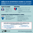 Esta infografía presenta comportamientos y sentimientos que pueden ser señales de advertencia de que alguien está contemplando suicidarse.