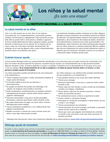 Folleto sobre la salud mental de los niños que incluye cuándo debe buscar ayuda, las medidas que los padres pueden tomar, la evaluación y el tratamiento, cómo elegir un profesional de salud mental, cómo trabajar con la escuela, recursos adicionales e información sobre ensayos clínicos.