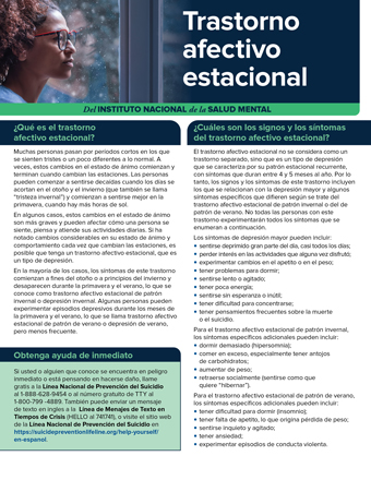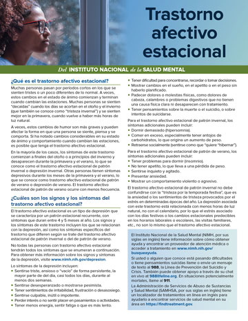 Muchas personas pasan por períodos cortos en los que se sienten tristes o un poco diferentes de lo normal. A veces, estos cambios en el estado de ánimo comienzan y terminan cuando cambian las estaciones. Muchas personas se sienten "decaídas" cuando los días se acortan en el otoño y el invierno (que también se conoce como “tristeza invernal”) y se sienten mejor en la primavera, cuando vuelve a haber más horas de luz natural.