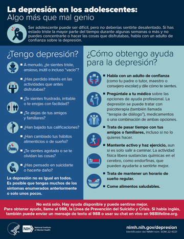 La información en esta publicación es de dominio público y se puede reutilizar y copiar sin necesidad de pedir permiso. Sin embargo, no puede reutilizar o copiar las imágenes. Por favor cite al Instituto Nacional de la Salud Mental como la fuente. Para obtener más información sobre el uso de las publicaciones del NIMH, consulte las pautas del NIMH para reproducir sus materiales.