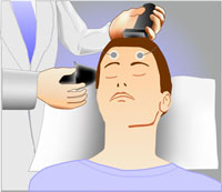 Rather than applying electricity directly to the head as with ECT, rTMS uses low-intensity magnetic pulses to stimulate the brain. Unlike ECT, in which stimulation is generalized, in rTMS, magnetic stimulation is targeted to a specific brain site. Also in contrast to ECT, the procedure does not require anesthesia and can be performed in a clinical or office setting.