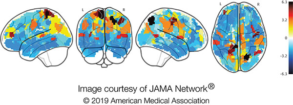Image showing differences in fMRI activation between children with and without anhedonia during reward anticipation. Credit: JAMA Network